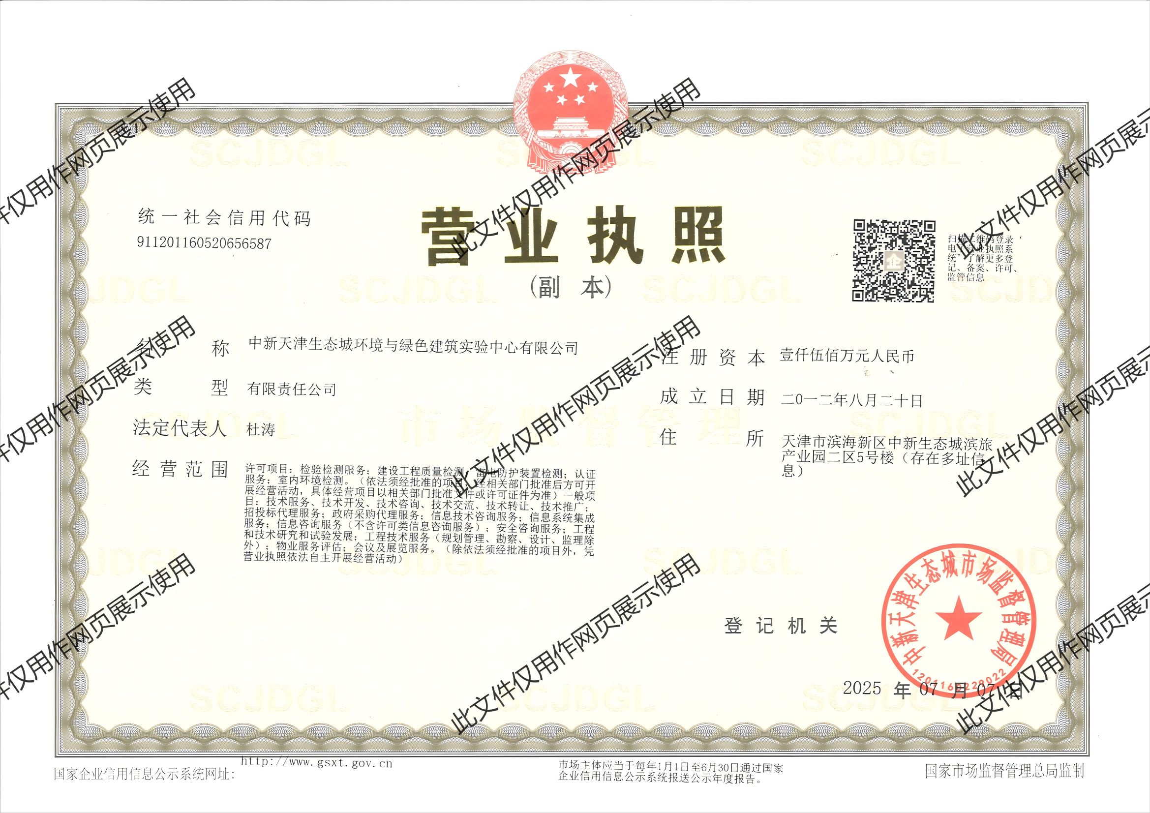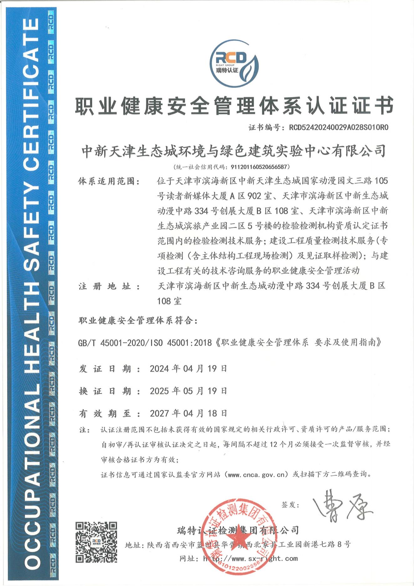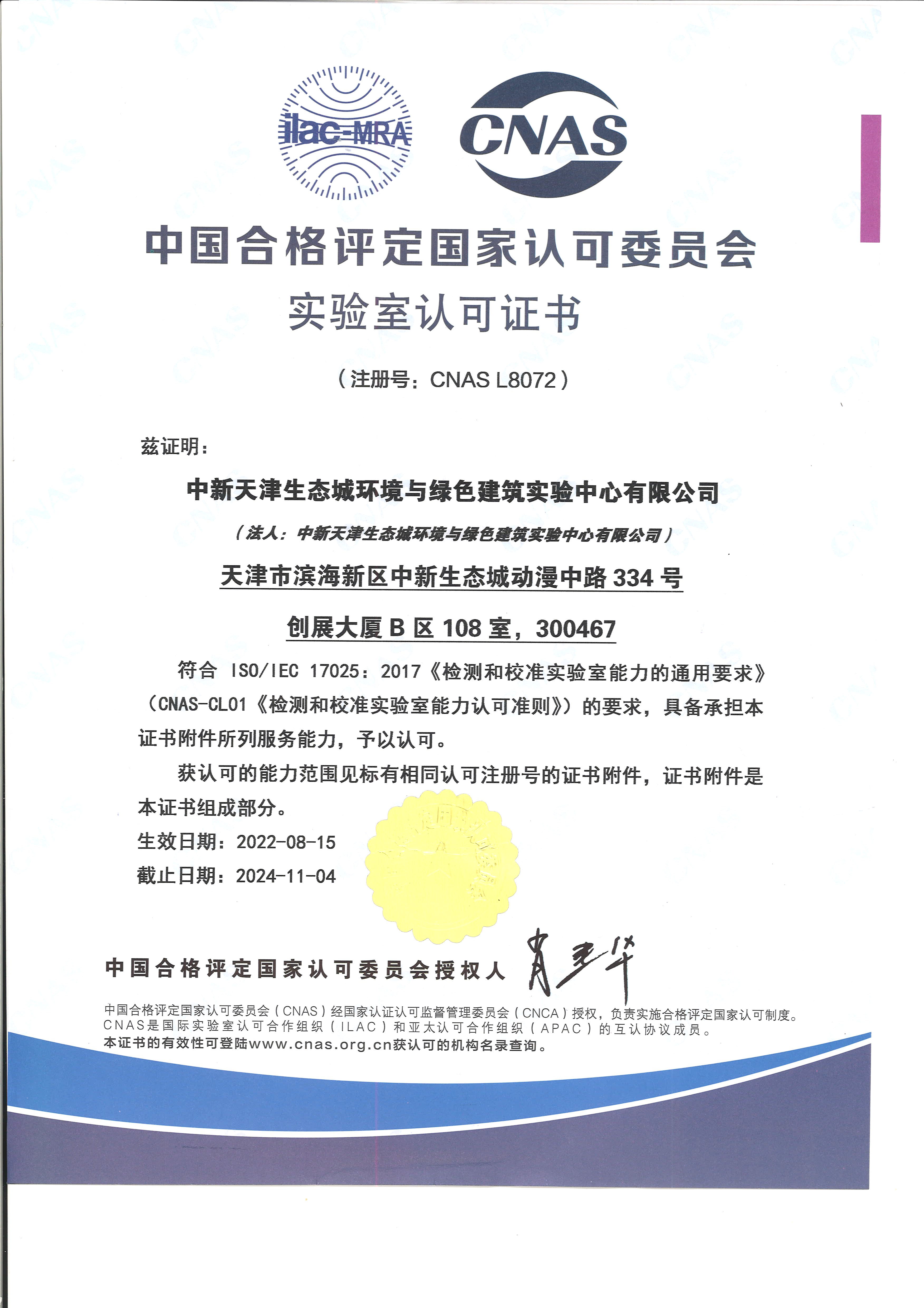 中新天津生態(tài)城環(huán)境與綠色建筑實(shí)驗(yàn)中心有限公司